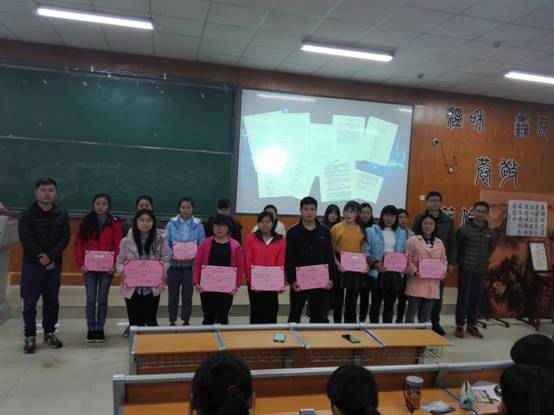 12月5日晚,大赛颁奖仪式于学院楼3501教室举行。公司党委副书记田伟、学院团委副书记杨洋、学院就业指导中心指导老师徐黎明、各班级员工代表,共300余人参加。仪式由就业指导中心工作人员周玉馨主持。活动伊始,2015级人文班田新同学带来的口琴演奏《茉莉花》拉开了颁奖典礼的帷幕。典礼上,主持人宣读各小组赛获奖名单;老师为获奖者颁发证书;田伟讲话,肯定本次大赛的意义,鼓励同学们多参加课余活动丰富文化生活,以促进自身全面协调发展;各小组赛一等奖获得者上台进行作品展示和介绍。