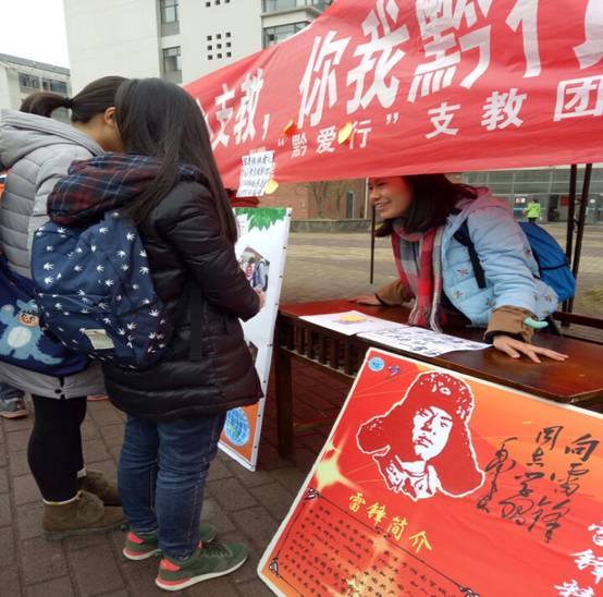 为了响应中共中央、国务院印发《关于加强和该进新形势下高校思想政治工作的意见》的号召,3月6日,在学院团委和老师的支持下,bwin官网“黔爱行”支教团联合学院青分会在花溪校区一食堂前开展了“学习雷锋”活动。
