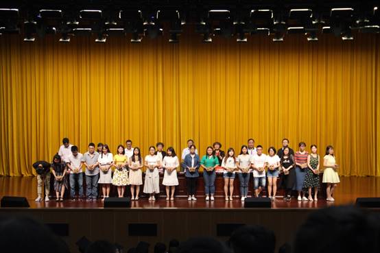 最后,院领导及各系主任为毕业生代表佩戴徽章。院团委为毕业生准备的视频和文艺节目带大家重温大学四年时光,典礼在精彩的文艺演出中落下帷幕。