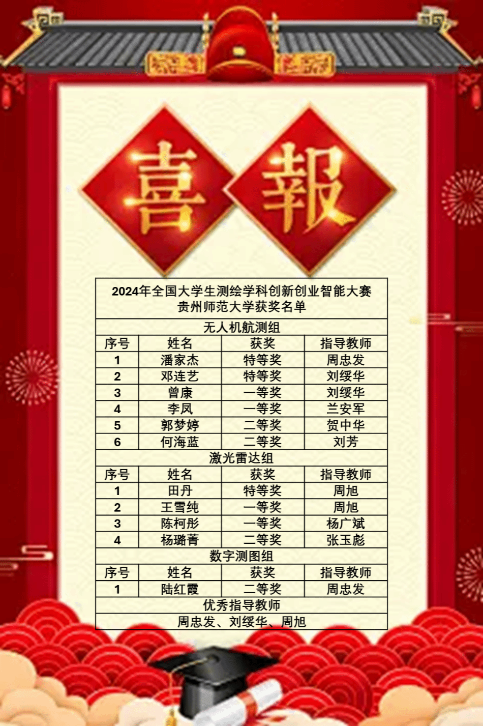 2024年贵州省老员工测绘学科创新创业智能大赛 bwin官方网站获奖名单 |