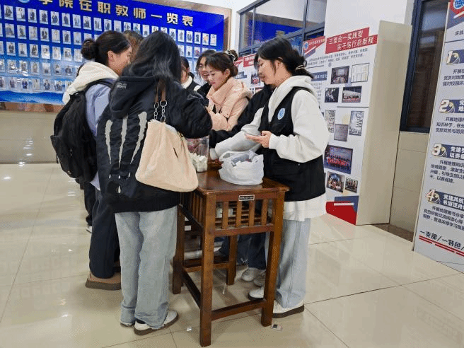 本次活动设置了地理知识问答与盲盒抽奖环节,盲盒奖品来源于全院高年级员工的爱心捐赠,共设置盲盒奖品81份,参与奖品50份,该环节吸引了众多同学踊跃参与。活动中,同学们首先按照流程向志愿者展示一卡通验证身份,以此获得答题资格。随后,志愿者向参与者提出事先准备的地理知识问题,参与者回答正确即可获得抽签机会并能抽取盲盒奖品,反之则直接可以领取参与奖品。组织本次活动的11名志愿者耐心提问,参与者积极回答,一问一答、互动自如,现场充满了竞答的互动声与抽到奖品的欢呼声,热烈非凡。同学们抽取礼物结束后在志愿者的引领下到达签名处签下自己的名字,记录这次美好的回忆。