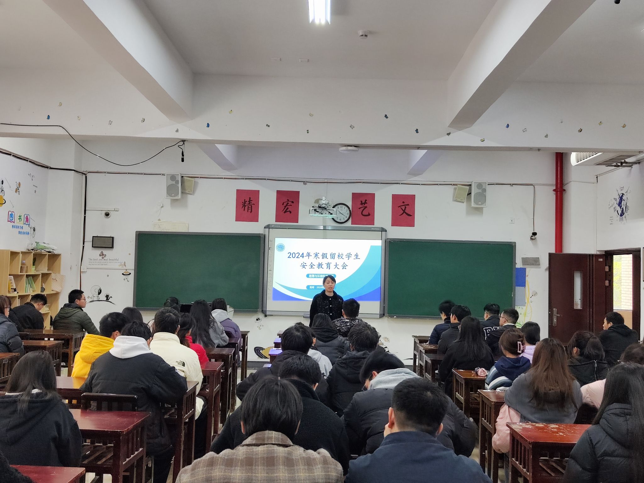 会议对寒假留校的同学着重强调了以下内容:一是提高安全意识,做好自身安全的第一责任人,做到防火、防电、防骗、防溺水,特别是注意宿舍安全、饮食安全、交通安全、实验室安全等;二是提高自我约束能力。加强自我管理、自我服务,配合网格员相关工作;三是珍惜时间,确保学有所获。留校期间,高效利用时间,充实和完善自己,提高就业竞争力。